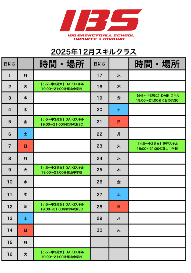 【スキルクラス日程】