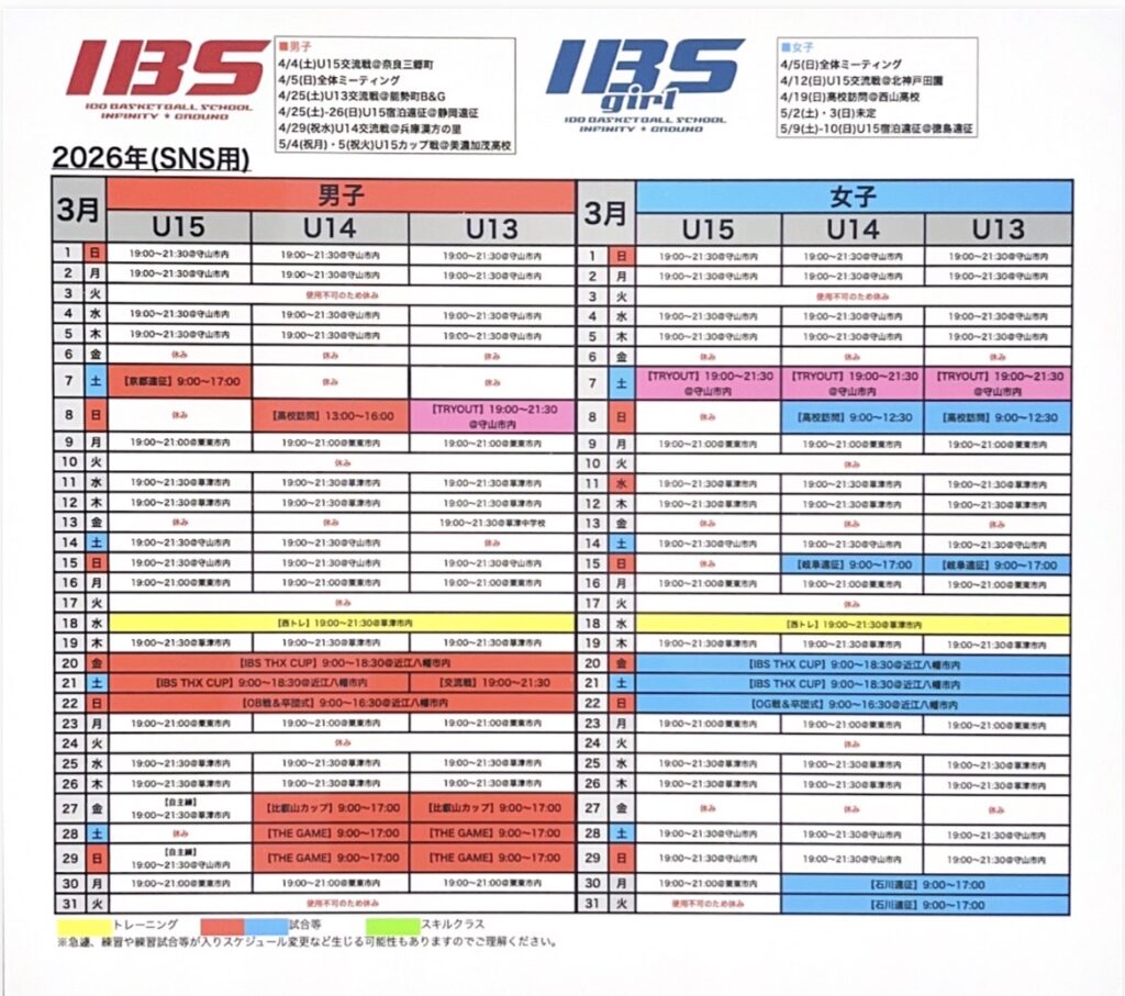 ※新小学6年生は週2(男子は火曜と金曜、女子は月曜と木曜)の活動予定。JBA登録もしないのでミニバスと併用しながら練習に参加できます。小学生受け入れは最大5名まで。